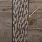 Horizontal Accent Line-bath:3,R 6″ wide with modern Schluter edging Passes through all three shower walls Choose any square or rectangular mosaic tile by MSI Mayflower Vertical Accent Line-bath:3,R