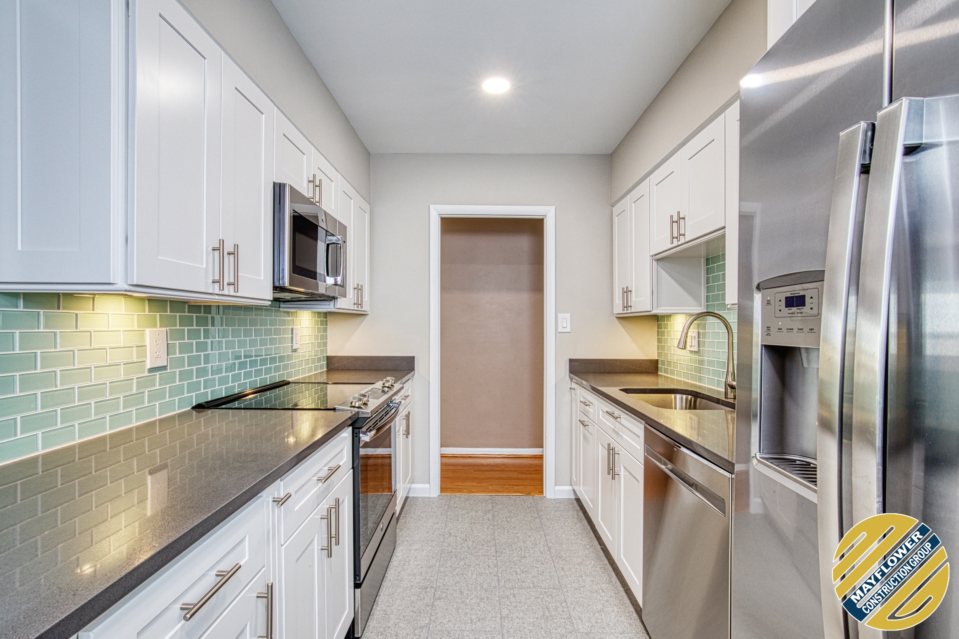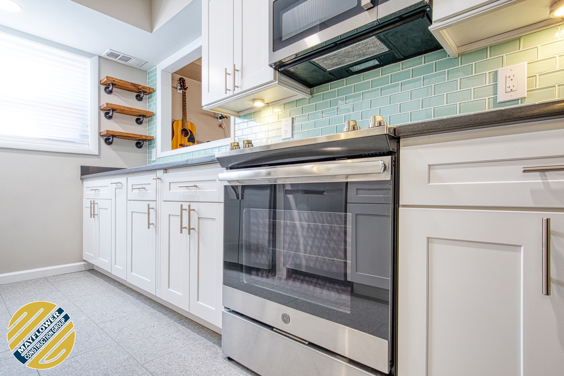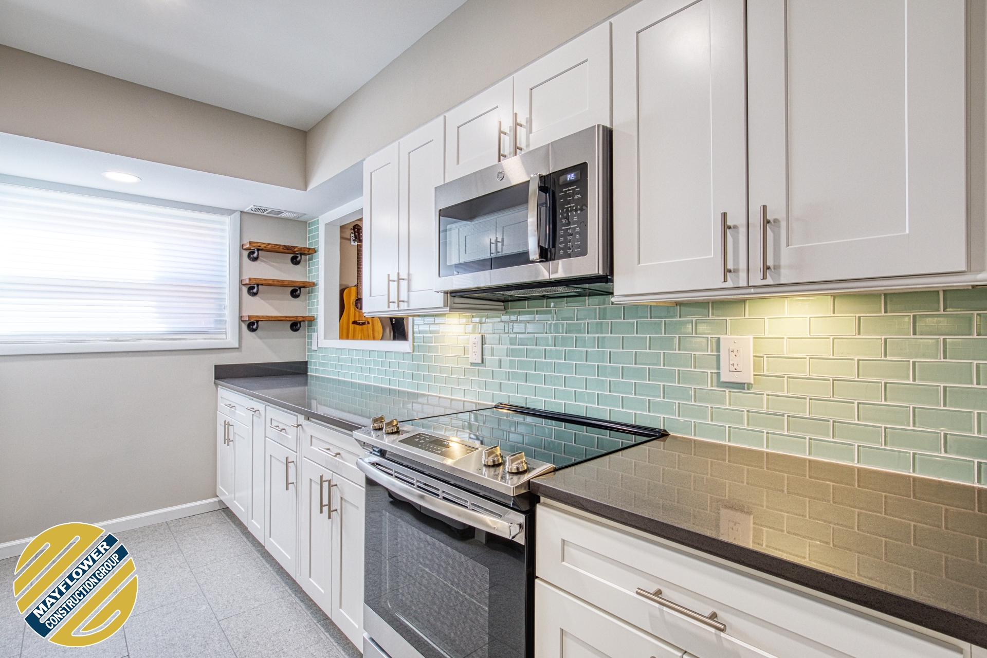 Trendy & Functional! Built with ice white shaker cabinet, quartz countertop & mosaicĀ