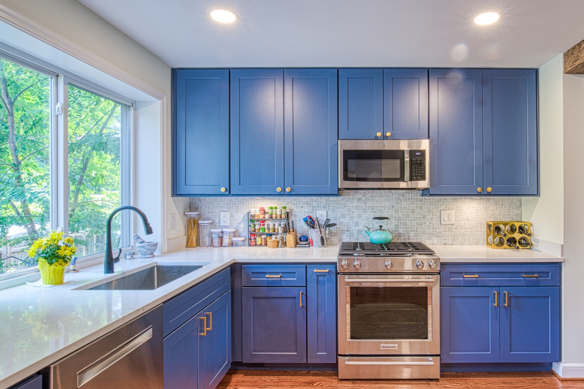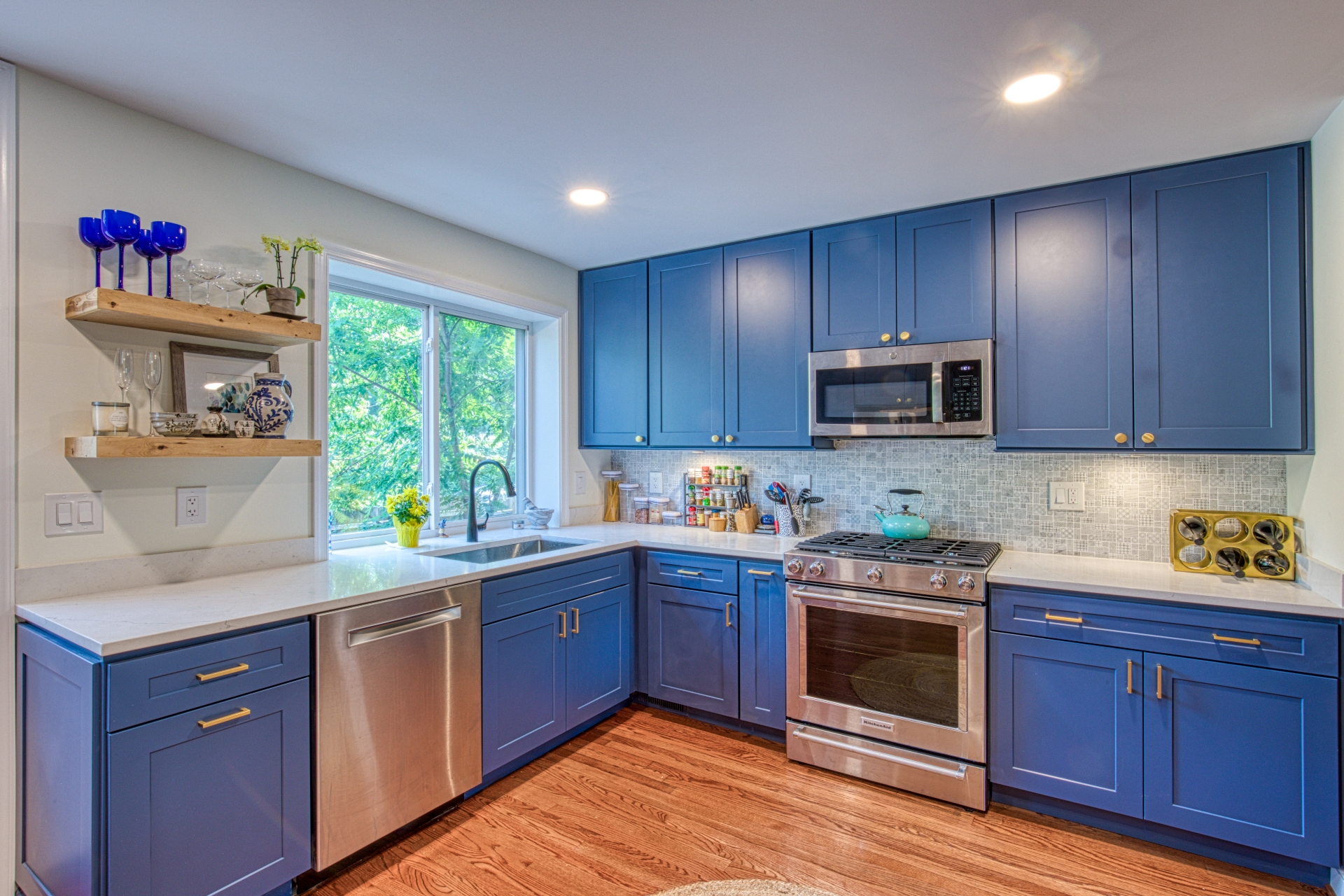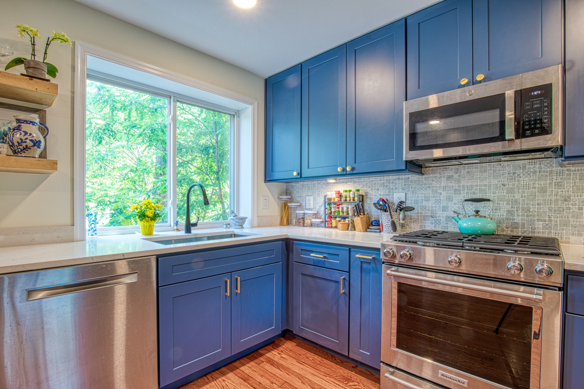 Dartmouth 5-piece “Seaport ” cabinets matched with L shaped quartz countertop