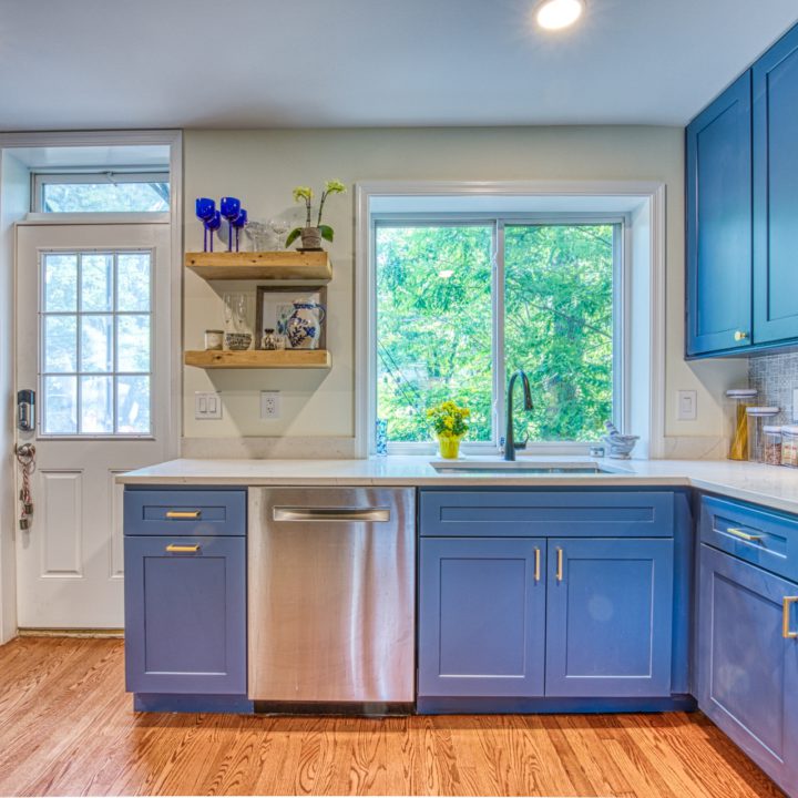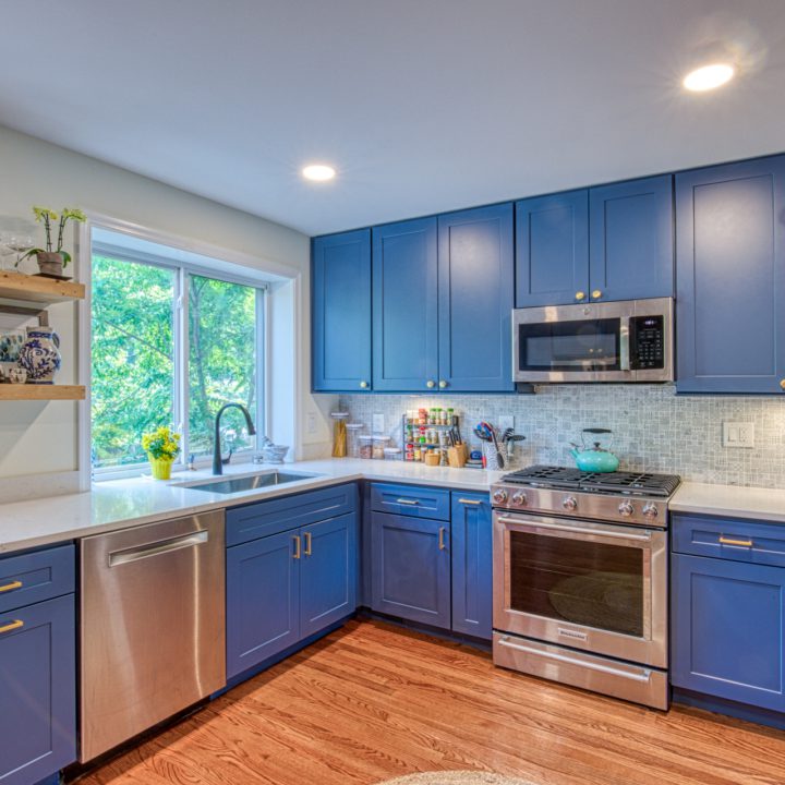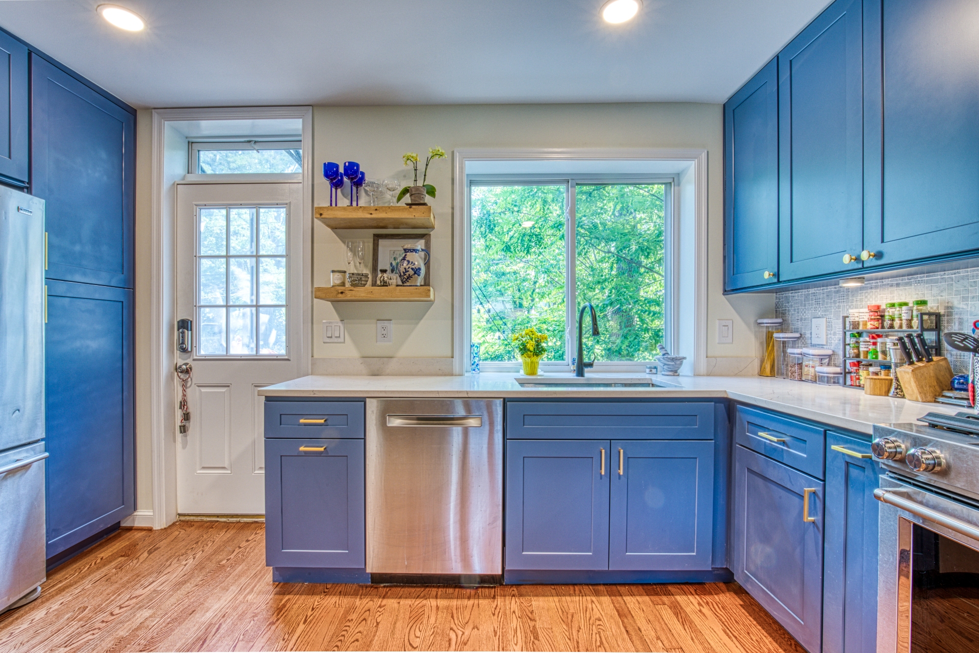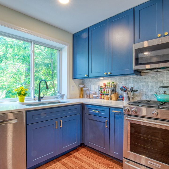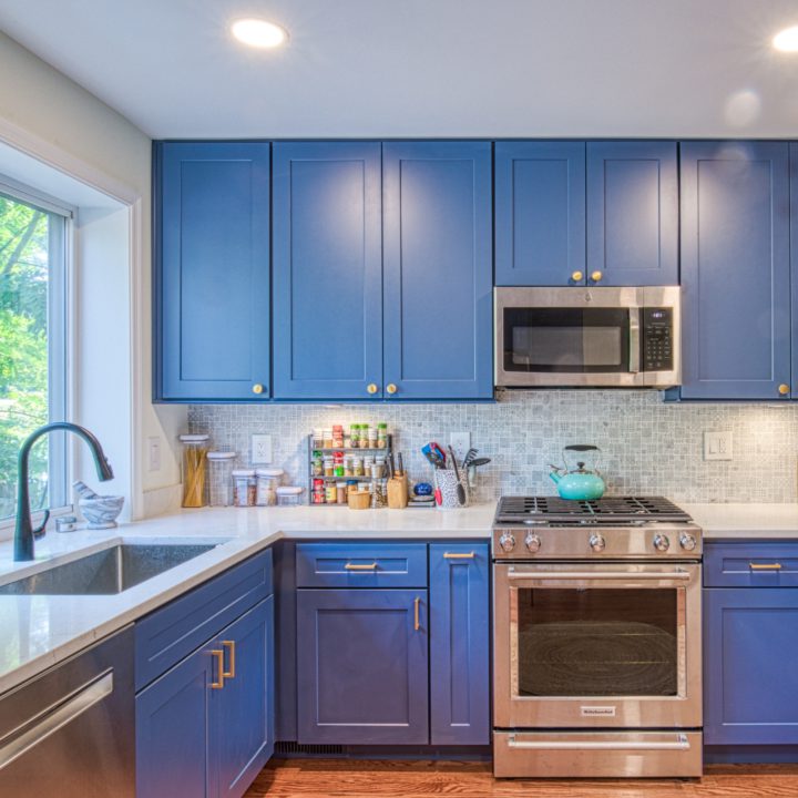 Dartmouth 5-piece “Seaport ” cabinets matched with L shaped quartz countertop
