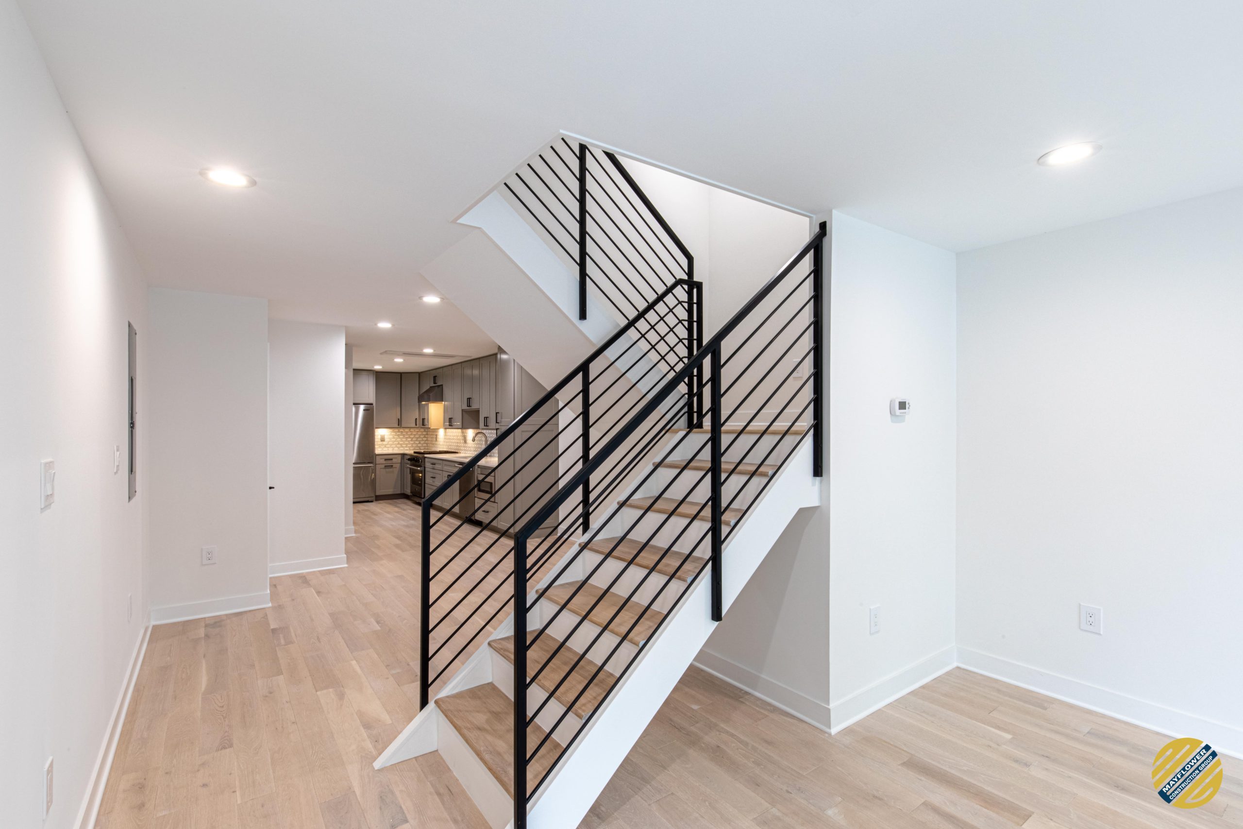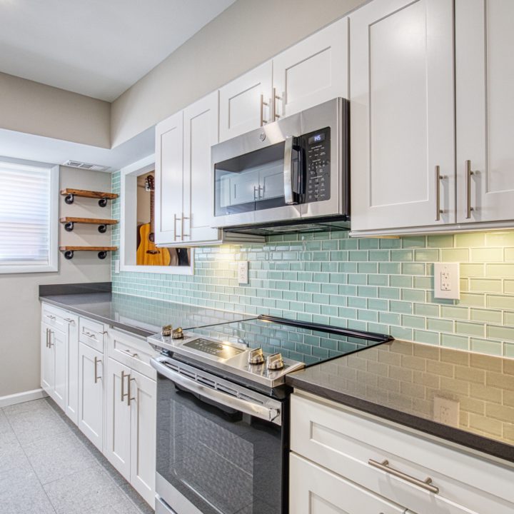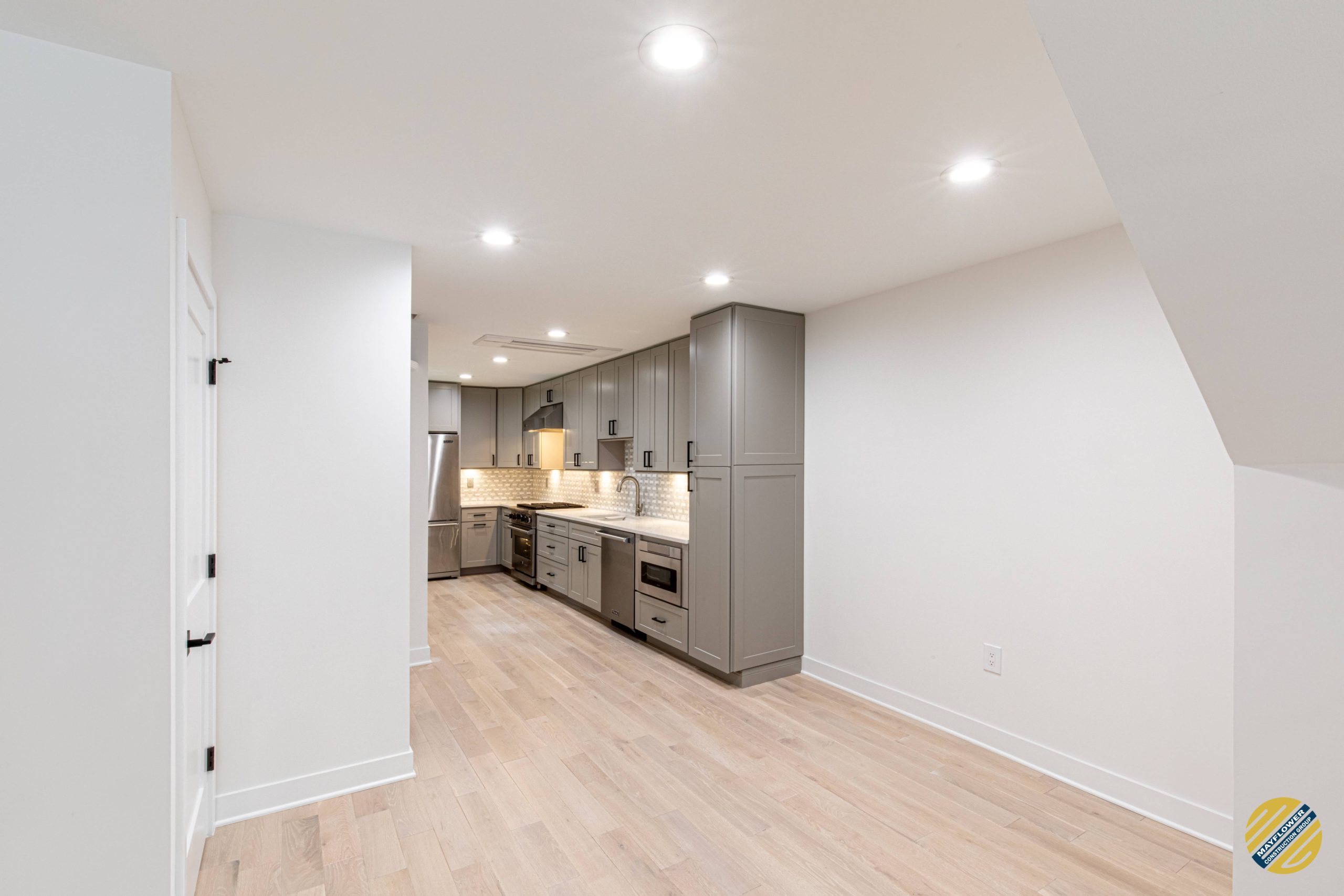 Accentuating kitchen with stainless steel appliances and light grey cabinets
